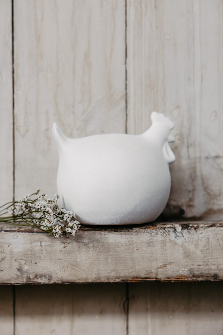 Dekorative Henne aus mattierter Keramik. Die Henne besticht durch ihre Schlichtheit, kann aber auch mit anderen z. B. Osterprodukten kombiniert werden. Legen Sie es in ein Osternest oder in eine schöne Schale, verschenken Sie es als schönes Ostergeschenk.